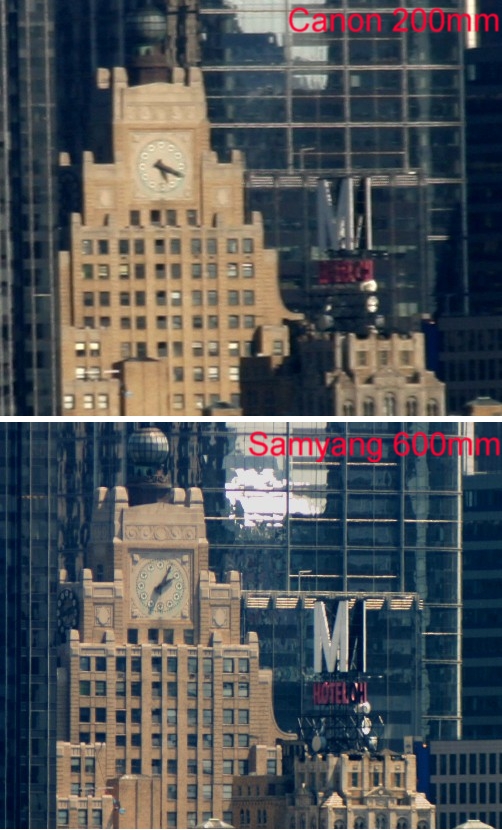 Samyang 600mm image compared to image taken with a Canon 200mm.