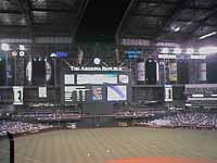 Prior to the game, the roof was opened amid much fanfare. It's actually pretty cool to sit and watch this monstrous thing open up. It isn't always open, though. If it's really hot, windy, or raining, the boys play with the roof closed. Yes, it's air-conditioned!