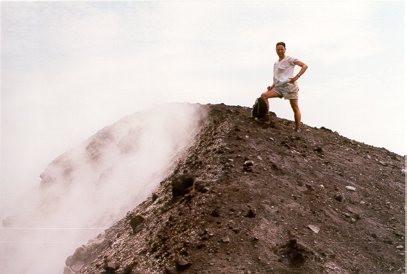 top want de zwavel gassen uit de vulkaan benemen je bijna de adem. Tijdens