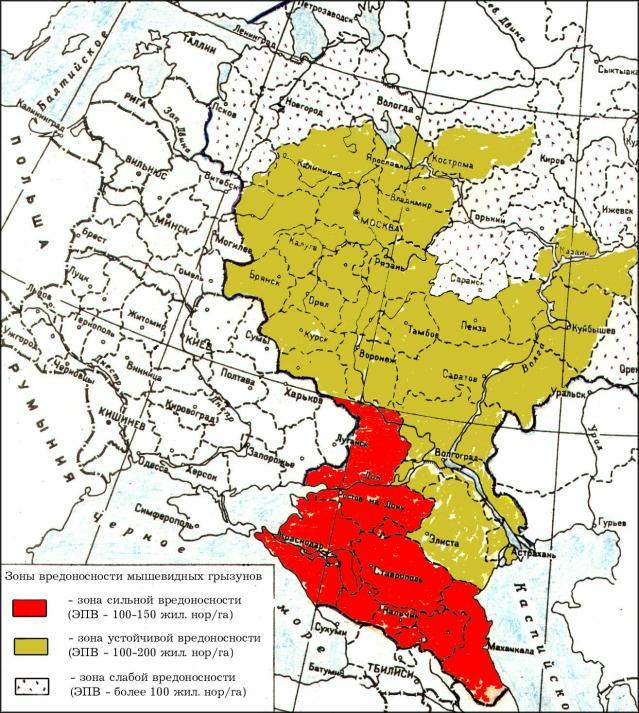 Карта 6. Вредоносность мышевидных грызунов в Европейской части России.
