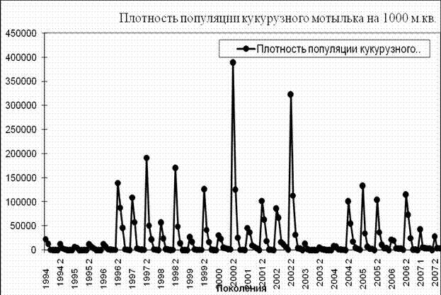 Динамика численности кукурузного мотылька в Краснодарском крае в 1994-2007
