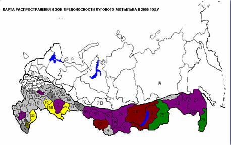 в 2008-2009 гг. благоприятных условиях развития и перезимовки вредителя