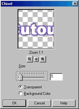 In the top two examples, when we made our text, we had both floating and antialias checked off. In this case,only check off floating. As we did before, go to Images, Effects and this time choose chisel. Here are the settings: