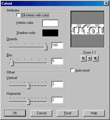 You will see when you try this, that your foreground color will actually be the text color and the color you have as your background actually becomes the chisel effect of your text. For a totally different look, instead of choosing transparent, try choosing background and see what the results are. So experiment to see what color you want to be your foreground and what color compliments it as your background and whether you prefer to choose transparent or background for your effect!