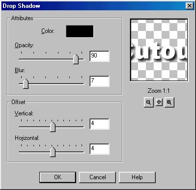 As we did before, go to Images, Effects and this time choose drop shadow. Here are the settings: