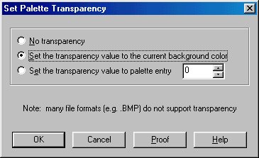 Set palette transparency - choose set palette transparency to the current background color. Hit ok.