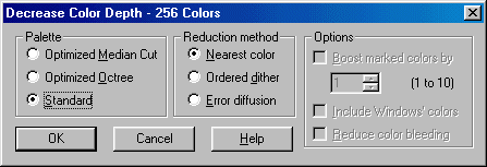 Choose Palette: standard and Reduction method: nearest color and then hit ok.