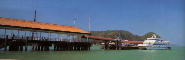 By Ferry-Ferry service from Kuala Kedah to Langkawi are available every day between 8.30 am and 6.30 pm.In Kuala Perlis, the ferries operate regularly between 9.00 am to 4.30 pm.From Penang, ferry service available every morning between 8.00am.There are also regular services from Satun,Thailand. Feri~Perkhidmatan feri disediakan setiap hari dari Kuala Kedah dan Kuala Perlis ke Langkawi.Masa yang diambil bagi setiap perjalanan kira-kira 45 minit (dari Kuala Perlis) dan 1 jam (dari Kuala Kedah).Beroperasi dari pukul 8 pagi hinggalah kepukul 6 petang.Terdapat juga perkhidmatan feri dari Pulau Pinang dan Satun kesini. |