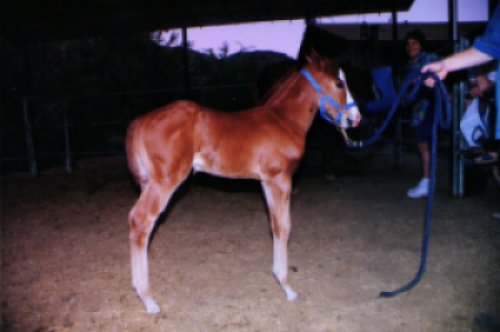 This is my equine pride and joy, Sun Uppity Socks. She is out of SocksBabe, a point earning halter Paint mare, and Sun Up Dude. You cant ask for a better disposition, and he does pass it on! Scooter, as we refer to her, is triple bred Sonny Dee Bar. Scooter was imprinted at birth, which we helped with at two in the morning, but was worth it! While she may be a breeding stock Paint, she's well bred, which to me is worth more than color. When Scoot first learned about halters, she was one day old. She was tied for the first time at 2 days, never panicked, and just pulled a little and fell a sleep. When ever Scooter was fustrated, she would lay down. Still does as a yearling. She clips, loads, stands for trimming, and is great for shots. There isn't a mean bone in her body, and is extremely quick to learn. This I contribute to her breeding, BOTH her mother and father's side. We are working on training her as a trick horse, she will lay down and play dead, ON HER BACK, and will begin training in about 8 months. Shes had a racing saddle on her a few times. Never cinchy, or bucking. The picture of her was taken at the age of 1 week. | Sun Uppity Socks - aka Scooter | ||||||||||||||||