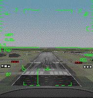 ![]() ![]() Here are my final two /images. The first shows me only seconds before touchdown. My FPM will usually float near the end of the runway for about 3-5 seconds before touchdown. Sometimes, if my AOA seems low (about 6 degrees) I will place the FPM on the horizon and float a few feet above the ground for a few seconds allowing my AOA to increase. The final image actually shows my touchdown. My AOA is near 10 degrees. Do not worry too much if your AOA is a little lower. You will also notice that you will land further down the runway than usual. This is normal for a flameout landing. Don't go too far though if you can help it.