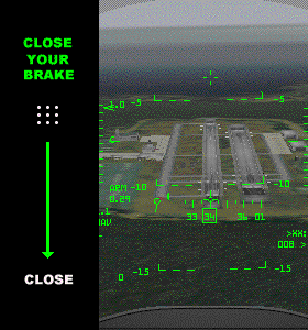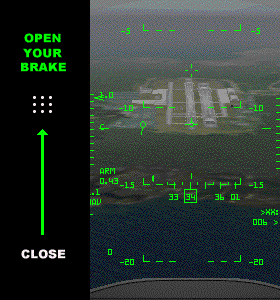 ![]() Upon touchdown you will want to extend the speed brake to help slow you down. Increase your AOA above 10 degrees to help aerobrake you.