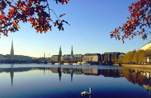 The first Putney Bridge was built by a local master carpenter, Thomas Phillips, between 1727-9. It had been designed by the architect Sit Jacob Ackworth, but the whole bridge was removed and replaced between 1882-6, with a new bridge designed by Sir Joseph Bazalgette. Putney Bridge has been the starting point for the University Boat Race since 1845. Still in London, let me take you further east to the centre and Westminster bridge. Upon Westminster Bridge EARTH has not anything to show more fair: Dull would he be of soul who could pass by A sight so touching in its majesty: his City now doth like a garment wear The beauty of the morning; silent, bare, Ships, towers, domes, theatres, and temples lie Open unto the fields, and to the sky; All bright and glittering in the smokeless air. Never did sun more beautifully steep In his first splendour valley, rock, or hill; Ne'er saw I, never felt, a calm so deep! The river glideth at his own sweet will: Dear God! the very houses seem asleep; And all that mighty heart is lying still! Leaving London let me take you across the Kennedybrucke in Hamburg. It links the two lakes of Hamburg the inner and outer Alster. Its a wet city and has its fair share of bridges many prettier and more strollable, but this one has to take the prize for its location although with the traffic and railway its two sides are almost inpenetrable. The river message board, tell me what you think! |