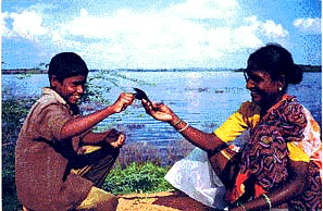 There are many such lakes formed by this manner, some very large. The lake called Husain Sagar in the middle of the city of Hyderabad too is an example.These artificial reservoirs are seen along the course of almost every rivulet, and in satellite photographs a characteristic pattern can be seen. By keeping the land moist long after the rainy season, lush crops can be raised in an otherwise rather dry and arid land. Lately, hardy species of fish like tilapia have been successfully bred in these reservoirs.