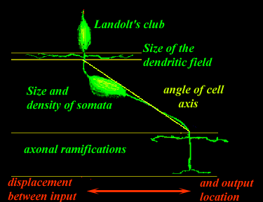 | In the visual streak, bipolar cells display a fan-like arrangement