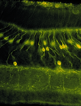 | Section of the midperiphery of a turtle's retina. Note the strong lateral
