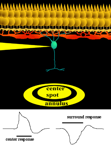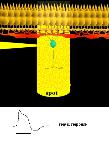 of a mudpuppy) with one ON-center bipolar cell that he is just recording