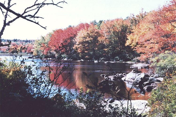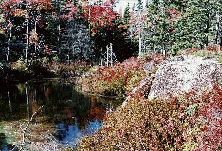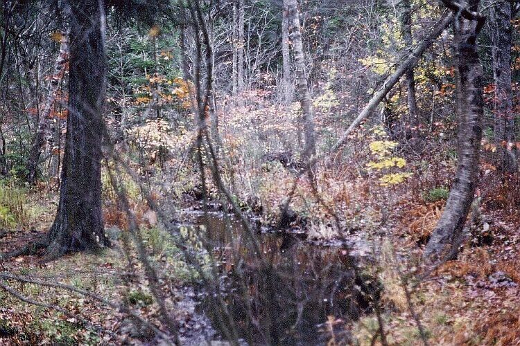 The McIntosh Run flowing into West Pine Island Pond in early spring Trees and ferns by the McIntosh Run in autumn |