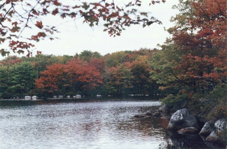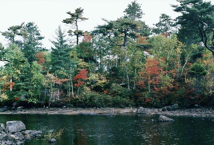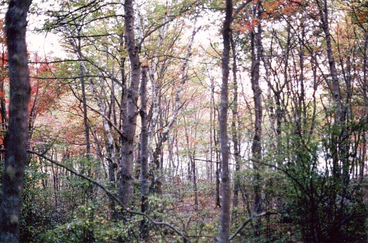 The lake viewed from a ridge in the autumn The north end of the lake in the autumn The northeast corner of the lake in the autumn Autumn woods on the east shore |