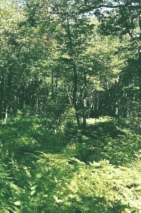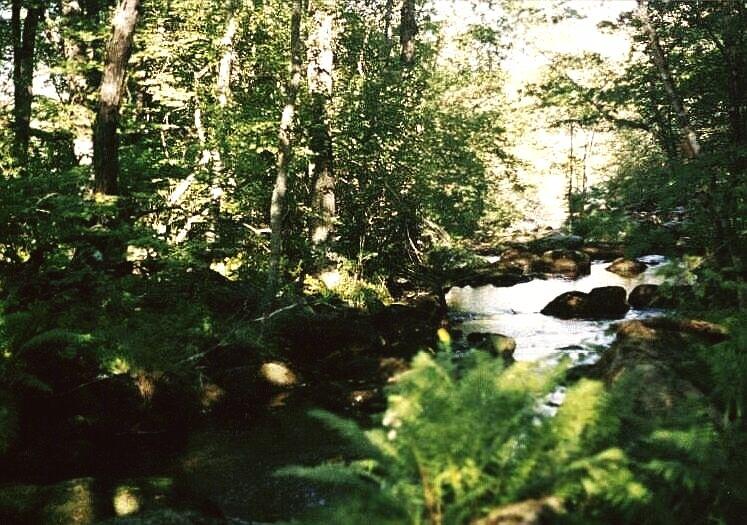 On a brightly sunny morning we walk around the Frog Pond. The coldness of the air, the mist rising from the water, and the presence of autumn colours amidst the predominant green, leave no doubt that it is autumn. Leaving the Frog Pond, we walk in the direction of York Redoubt. It quickly becomes warmer, and it becomes more difficult to remember that it is no longer summer. As we look across from a ridge near York Redoubt to the granite ridge that lies between Colpitt's Lake and Flat Lake, we notice a solitary scarlet maple, but this is not enough to convince us that it is autumn, if we know that the first maples change colour in late summer. In a nearby maple wood, it feels as if it is still summer. |