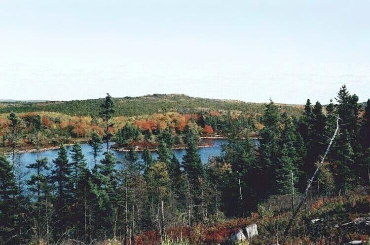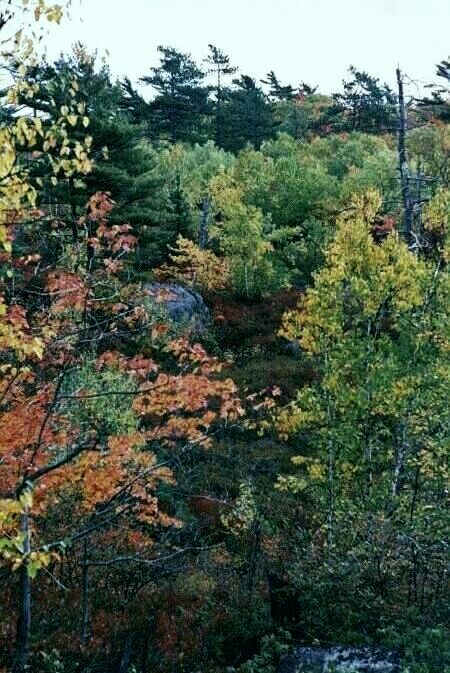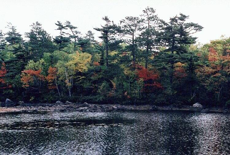 well represented in the landscape, but many deciduous leaves are still green. We descend from the ridge and walk towards Colpitts Lake.