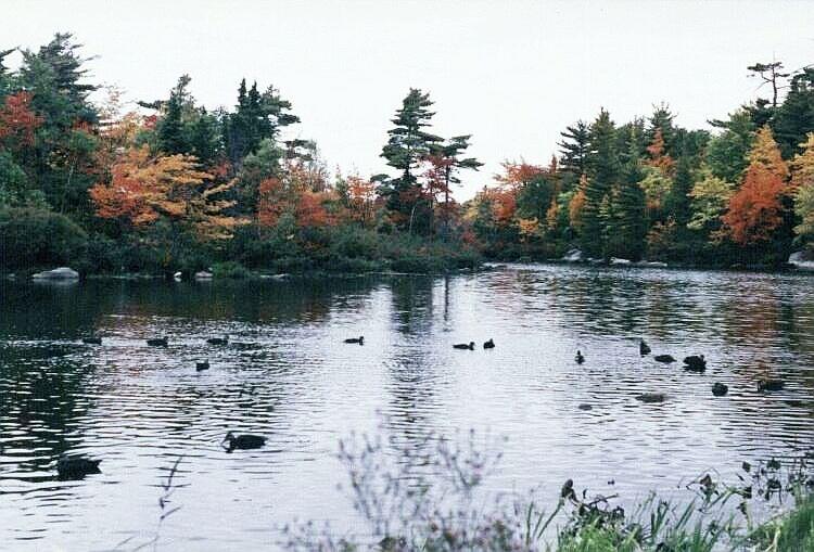 southern end of the Frog Pond. The deciduous trees vary greatly in colour, and