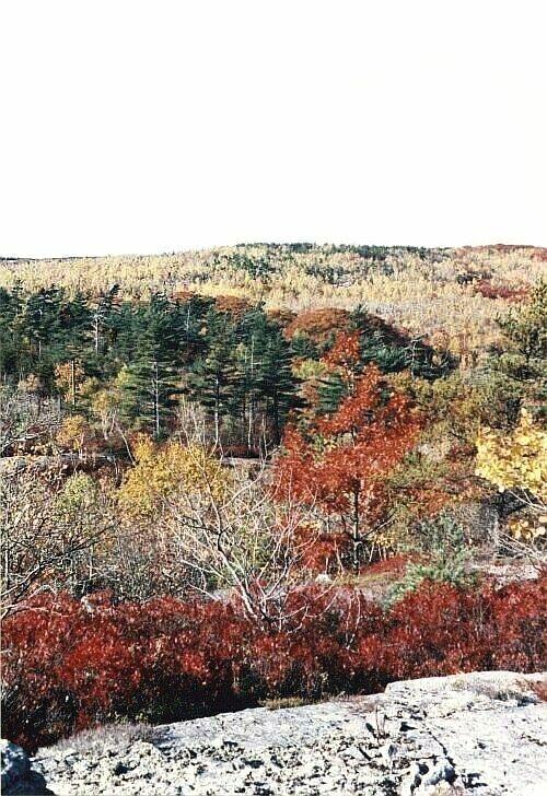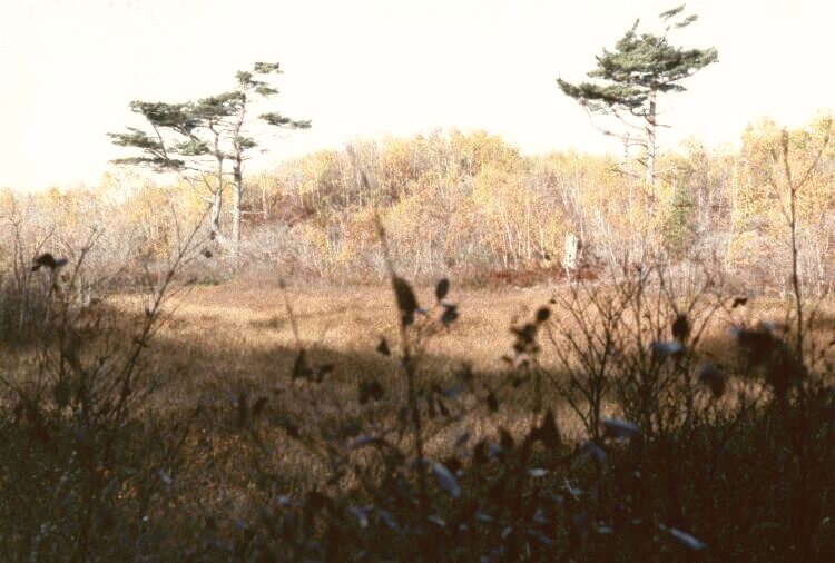 October 25 Williams Lake - Ridge south of Williams Lake - Jollimore | Starting at the east end of Williams Lake, we look across to the southern shore. We skirt a bog and pass a stand of birches flanked by Indian pear bushes as we head for the ridge on the south side of the lake. We reach a part of the ridge which offers a view towards the granite plateau. Descending from the ridge, we proceed to Jollimore. On the shore of the Northwest Arm we have a view across to the Halifax Peninsula and McNab's Island. In another part of Jollimore, near the old graveyard, we find an outstandingly beautiful bog. |