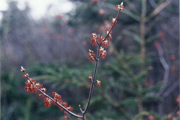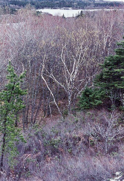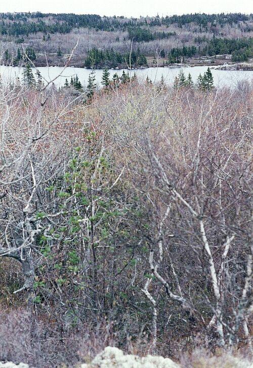 East Pine Island Pond - Herring Cove | From the McIntosh Run we proceed past East Pine Island Pond towards the Purcell's Cove Road. Just before reaching the road we see these blossoming mountain maples in a hollow. The intensity of their spring colour rivals that of autumn. The same is true of these red maple blossoms and these other star-like maple blossoms, when they are viewed at close range. We continue to Herring Cove, where we take a close look at some grey-green willow catkins and some yellow willow blossoms. In Herring Cove we have a view of the Atlantic Ocean. We also have a view across Halifax Harbour to McNab's Island. Further on we come to Herring Cove harbour, which is actually the mouth of the McIntosh Run. |