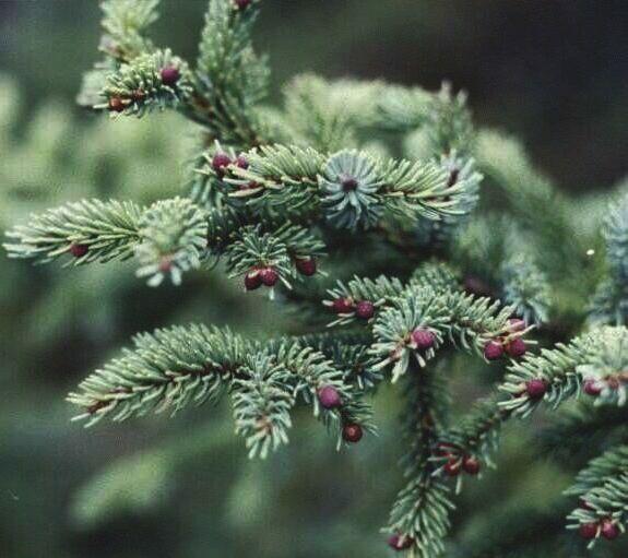 West Pine Island Pond - McIntosh Run | Now we leave the granite ridge between West Pine Island Pond and Duck Pond, and return to West Pine Island Pond. On our way to the McIntosh Run, we pass a spruce with small purple cones, and some small mushrooms in sphagnum moss. We find the McIntosh Run gushing between sprouting and blossoming trees, on its way from West Pine Island Pond to Power Pond. |