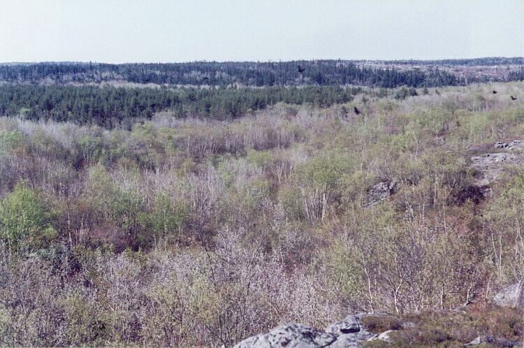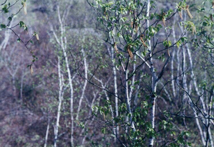 bands of birches and conifers.