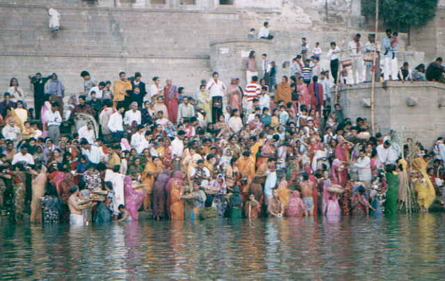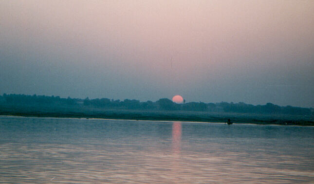 The second that sun rose, people all along the river started bathing like mad. It was an incredible site. The mood was festive - bands were playing, firecrackers were exploding everywhere, and saris of all the colors of the rainbow could be seen upon the riverbanks.