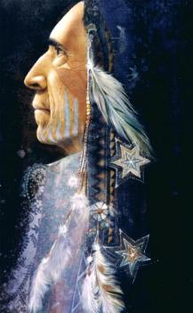 When the sun had gone down on the third day, The Traveler had searched the hills, but had found no horses. And so it went ... night after night the Stallion came to The Traveler directing him to some distant spot, but he never found his horses. He grew thin and footsore. Sometimes he got a horse from some friendly camp, sometimes he stole one in the night. But always, before morning would come a loud drumming of hoofs, the Ghost Stallion and his band would gallop by and the horse of The Traveler would break its picket and go with them. And never again did he have a horse; never again did he see his own lodge. And he wanders, even to this day the old men say, still searching for his lost horses. Sometimes they say on a windy autumn night, when the stars shine very clearly and over on the Cree Jump the coyotes howl, above the wind you may hear a rush of running horses, and the stumbling footsteps of an old man. And, if you are very unlucky, you may see the Stallion and his band--and The Traveler, still pursuing them, still trying to get back his beautiful horses. For Graphics on this page see link below to Denton Lund's Web site. | ||||||||||||||||||