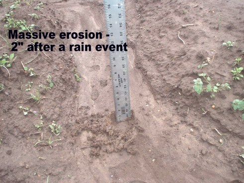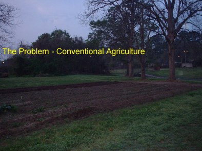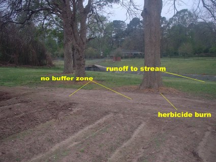 The problem here is #1, students are taught to farm in an obsolete fashion, using no conservation techniques and using chemical fertilizers, pesticides and herbicides. #2, The department prides itself on water quality research and right in its front yard is a terrible example of agriculture which directly pollutes the stream less than 50 ft away.