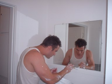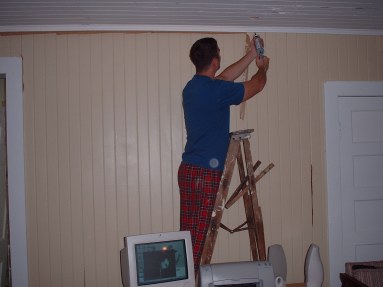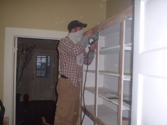 ![]() Left: me sanding. Right: the exterior under renovation