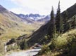 Suddenly the road broke out into an open valley and the grade became impossible to ride. A four wheeler went by and had to slip the clutch and rev his engine several times to make it up one incline. We pushed up the first pitch. On the second, steeper one we experimented a bit. I tried disconnecting my trailer and carrying it up like a backpack. Possible, but not fun. We then pushed Jeanne’s bike-trailer combination up together. That was much better. At least we now had a feasible way to get our rigs over the steeper climbs we knew were higher up on the pass.