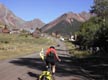 Jeanne heading into Ophir. Ophir Pass is in the notch above town…