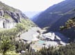 On Thursday, we woke to clear skies. Eager to try to get over the top of Imogene Pass, 2600 feet and several miles up, we were packed up and riding by 9:40 AM, after a quick breakfast of granola and leftover spice cake with hot chocolate. Our plan was to push ourselves as hard as possible to get over the pass and down to Telluride, where we would reward ourselves with a full day off and dinner at a good restaurant. The road forked, with the smaller fork crossing the stream by our campsite and heading for Telluride via Imogene. We cruised around puddles and alarmingly close to the edge of a sheer five or six hundred-foot drop off. From the cliff edge, we could easily trace the last half of our route from the day before, climbing up the west side of the valley wall below.