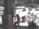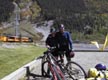 Jeanne found that if she stopped to take a break on the climb, she couldn't get back on her bike on the steep slope. We developed a routine where I would help her get started by holding her bike upright while she got her feet ready on the pedals and started off, then I'd hop on my own bike to chase after her. We had some trouble with this at first until she realized that in her trepidation (caused by the fact that I would hold her bike at a 45- degree angle in my direction) she had been clamping the brakes on as I tried to push-start her.