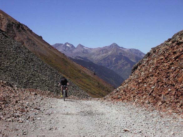 After lunch, we surprised ourselves by managing to grind our way up over Cinnamon Pass, 3300 feet higher than Silverton.