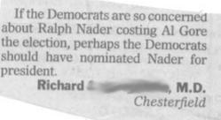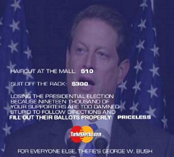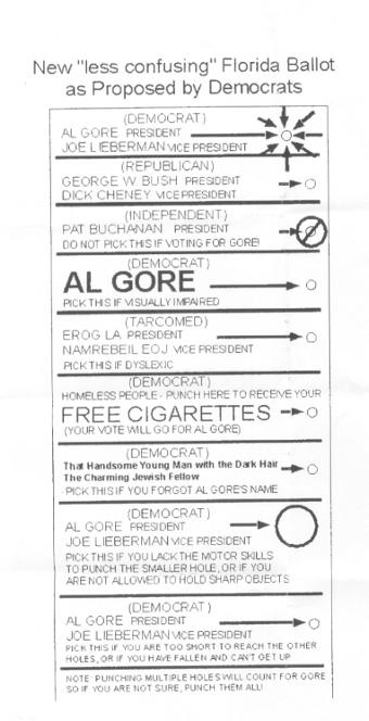 Me and approximately 250,000 of my friends voted for Al Gore but intended to vote for George W. Bush. We just made a mistake in the ballot box. You should trust this because we cried and we believe our rights were taken away. So just go ahead and switch those votes to Gov. Bush.