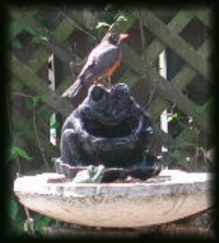 Robin waiting for me to turn on the mister.... Bleeding Heart....... macro setting