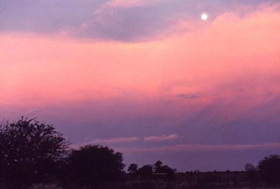 This was the last sunset we saw for the year 1998. That night we entered 1999 with two big rump steaks, a few bottles of wine and jackals that tried to join the feast by stealing the meat off the fire. | ||||||||||||||||||
