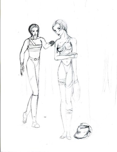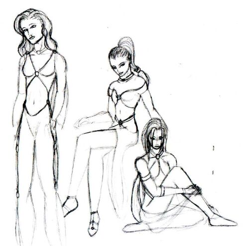 The positions were drawn of some pics of me and my friend, and I just felt like making some exotic clothes... I think they're dancers...