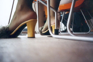swaller?" The woman shakes her head, no. "Kin ya breathe?" The woman