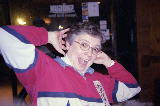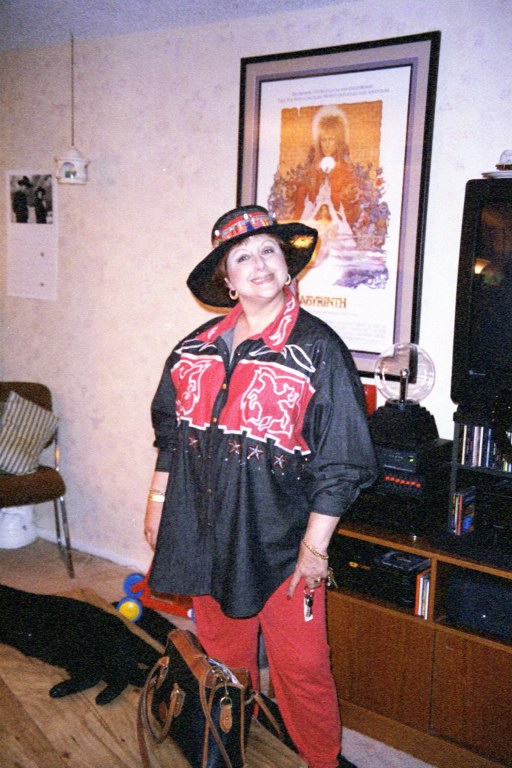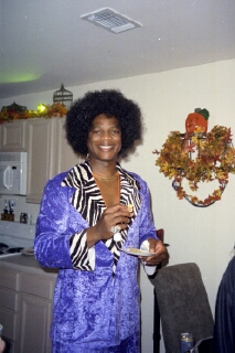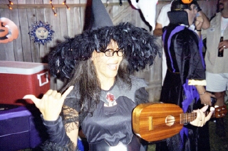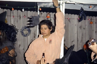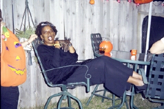 ![]() Now Cathy here, decided that she was going to stay in hat chair come hell or high water during the 2001 Halloween party