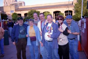 ![]() Art, Helen, John, Bob, Glenn, Hinda, and Oly before entering the gate at NIOSA
