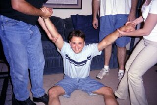 ![]() Nate, in two of my favorite poses. At Halloween 2001 as the leather guy from "The Village People", and so drunk he couldn't stand at his 30th Birthday Party!