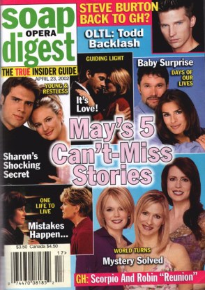 Here you'll find the latest magazine covers that feature soap stars on their covers. If you know about a cover that's not featured here, please be sure to e-mail me (past & present covers are welcomed).