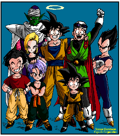 | Dragonball 1 | 23, 857 kb | Pic of Super Saiya-jin Gokuu, with Trunks, Vegeta, and Piccolo in the background |