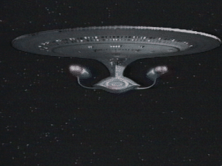 [Anmerkung: "Pille", DeForest Kelley von der "alten" Enterprise, hat einen kurzen Gastauftritt als 137jähriger Admiral McCoy, und erstmals ist zu sehen, wie sich Rumpf und Kampfbrücke der Enterprise voneinander trennen. Diese Fähigkeit besass zwar auch die alte Enterprise, allerdings wurde es nie gezeigt.]