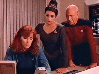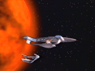 Riesenstern explodiert, drohen Teile der Oberfläche das Schiff zu zerschmettern. Data